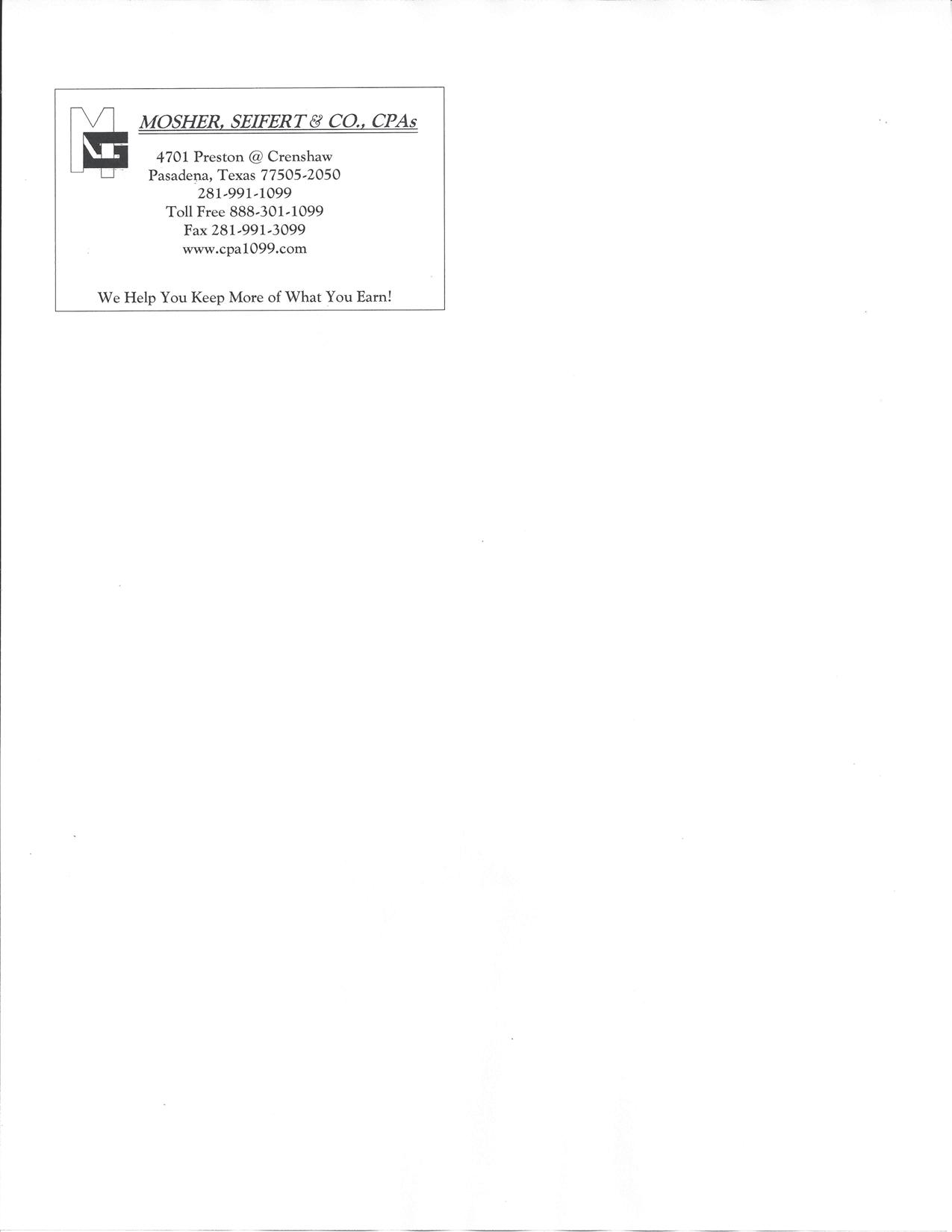 106 281-487-2249 281-487-1678 (Fax) JBcpa2006@yahoo.com 3525 Preston Ave. Pasadena, TX 77505 Jackie Barmore Certified Public Accountant Constable Phil Sandin Supports the McDonald’s Texas Invitational 2018 BRONZE SPONSORS