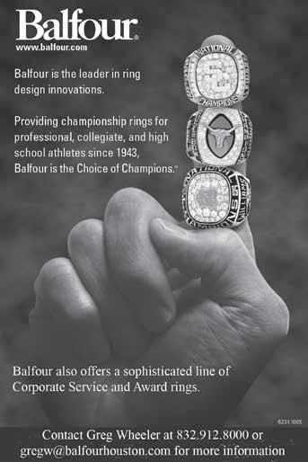 95 THE PLACE FOR INDOOR FUN FIELD TRIPS UNLIMITED BUFFET H 12 BOWLING LANES H ROCK CLIMBING WALL BUMPER CARS H 2-LEVEL LASER TAG H OVER 150 INTERACTIVE GAMES www.itzusa.com HOUSTON 832-678-2151 PASADENA 281-998-2424 PARTIES BANQUETS Contact: Joseph Blasi, ARM, CPCU Direct: 713.877.6565 INSURANCE AND RISK MANAGEMENT CONSULTING MCGRIFF, SEIBELS & WILLIAMS Main: 713.877.8975 818 Town & Country Blvd., Ste. 500 Houston, Texas 77024 www.mcgriff.com Vice President rhill@nahsportsflooring.com 3528 E.T.C. Jester Blvd Houston, TX 77018 Office: 713-956-2700 ext 15 Direct: 281.733.2224 Cell: 832-421-0062 www.nahsportsflooring.com REGGIE HILL SPORTS FLOORING, LLC A Covington Company 767643_NAH.indd 1 9/18/15 2:13 PM 2018 SILVER SPONSORS