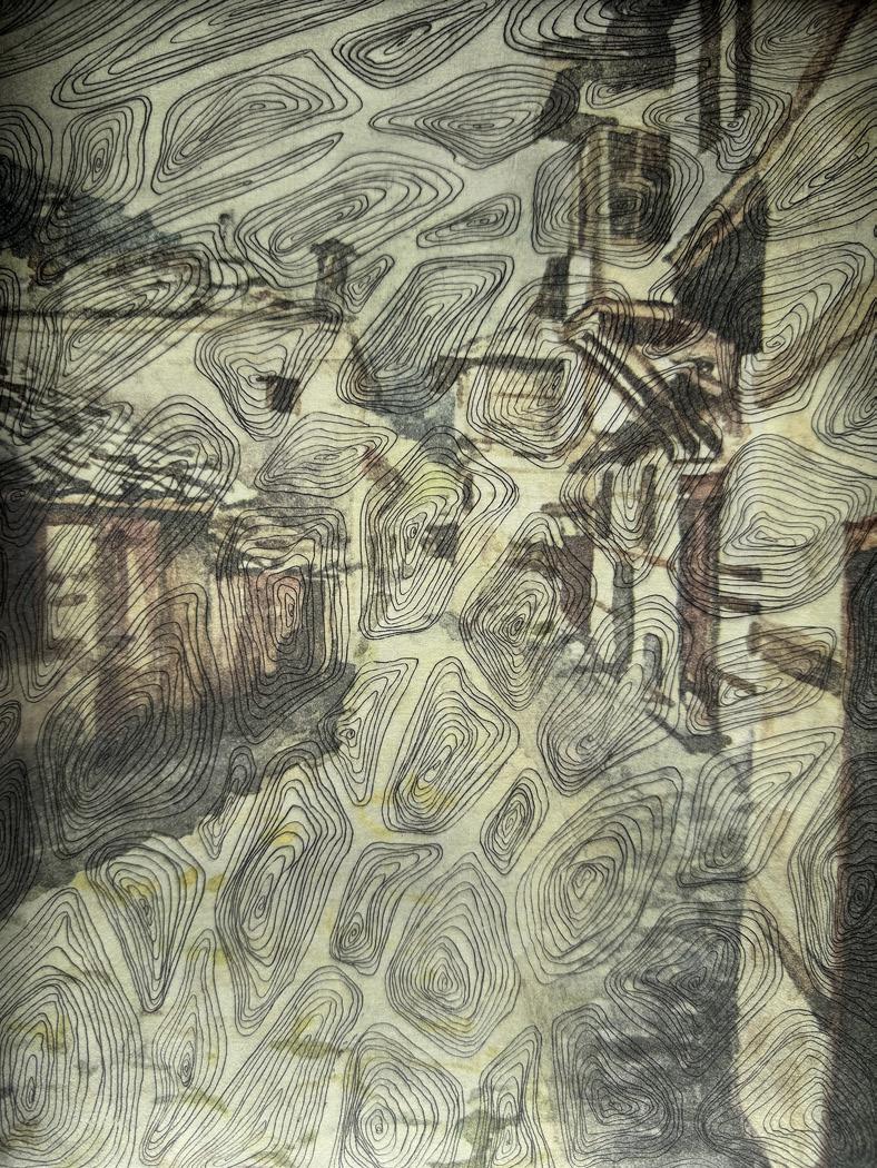 Mixed Media Collage: Watercolor, Pastel, Pen & Ink, Rice Paper 16" x 12" $350