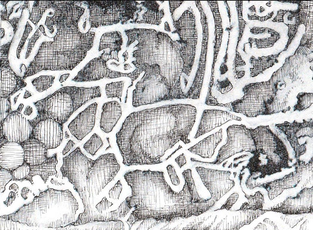 The work you see here originated with a photograph of footprints in the dusty soil of Zion National Park. It is one in a series that are titled “Middle Earth”.
