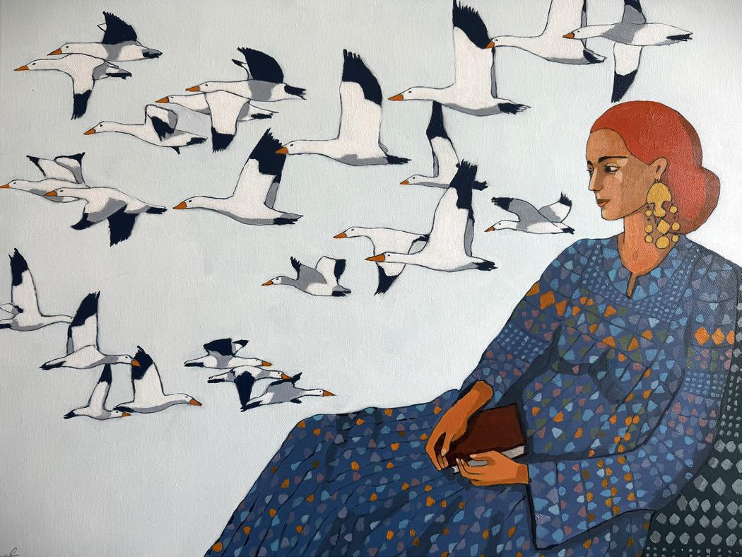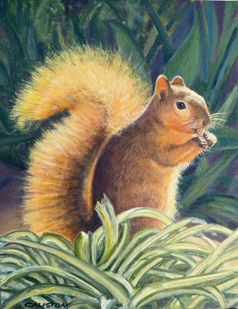 This little squirrel stole my heart the moment I saw her. Growing up amid the quiet fields and forests of the English countryside, I’ve always felt a deep affection for wild creatures. Painting her was my way of holding on to that fleeting, tender connection—a reminder of the simple beauty that nature so generously offers. I chose a limited palette to let the softness of her spirit and the serenity of the moment shine through.