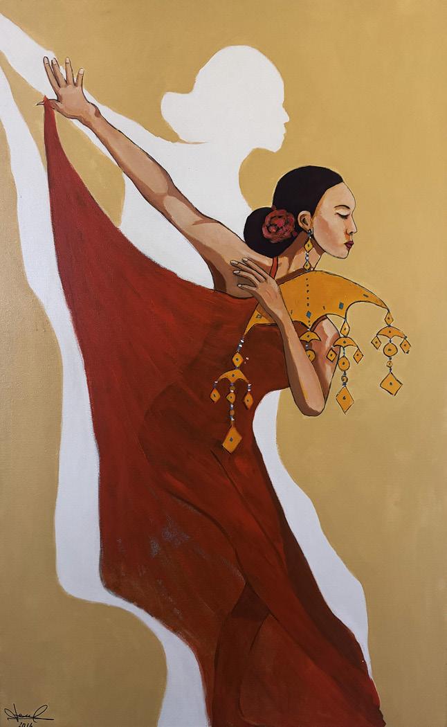 This is an expression of a dancer wearing ancient earrings, creating a white shadow.
