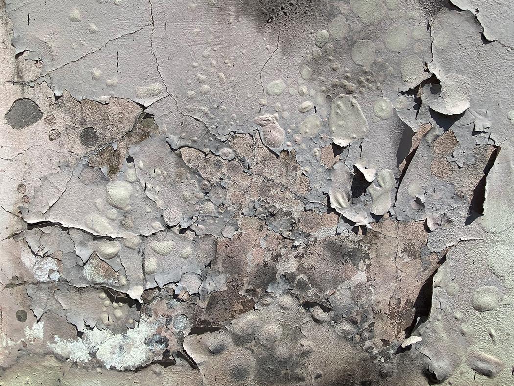 This is a closeup of a burned wall of the Altadena Community Church, near the corner of Lake and New York Drive. The fire created cracks, and puckering and blistered paint, against the stucco walls. The once uniform cream color burst into grey-teal, paynes grey, light green and light brick-orange. The fire selected its own color palette, leaving behind it’s destructive beauty against the destroyed church walls. Here is another example of the “fire paintings” left behind by the Eaton Fire.