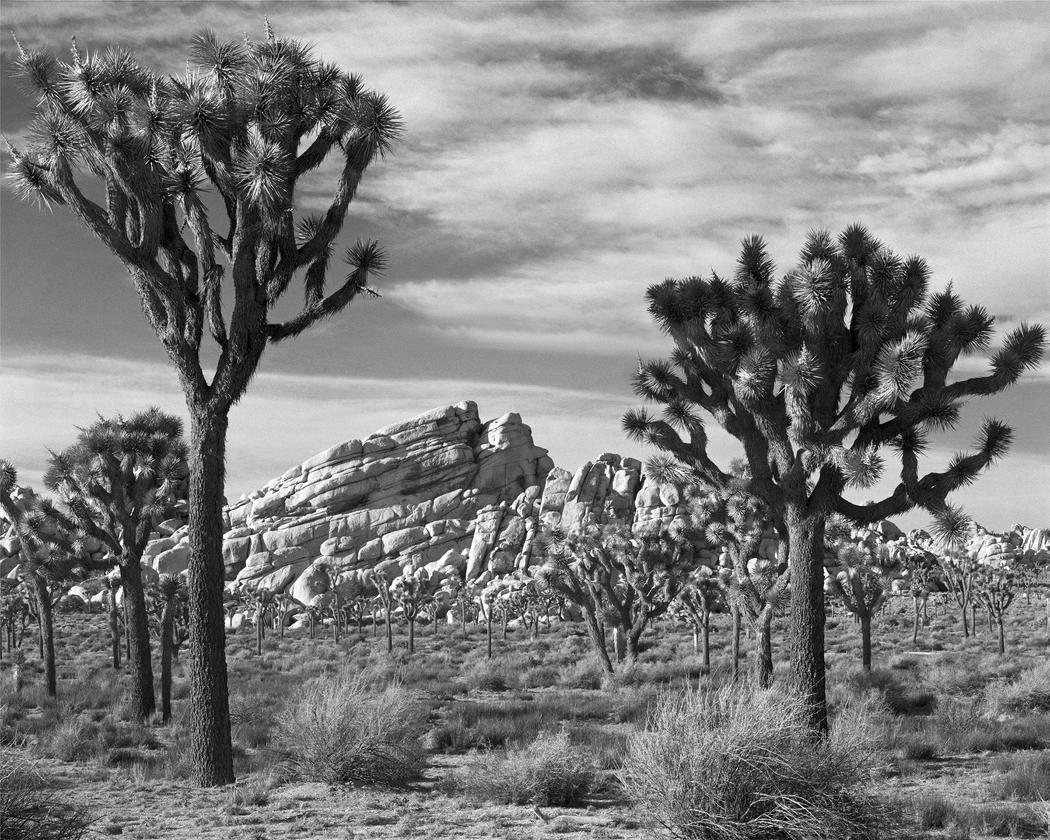A quiet tranquil scene is belied by a visually complex landscape. It’s textured with variegated rock shapes, an understory of mottled vegetation, and trees whose limbs end in bundled accents of needles. This scene does not reveal the fact that Columbian mammoths, sabertoothed cats, giant ground sloths and llamas once roamed here.