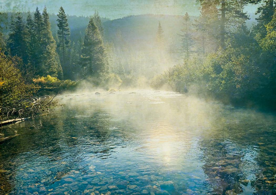 The river murmurs, the trees hold their breath, and the air pulses with gravity as the first light of dawn spills over the mountain ridge. Fog weaves silently through the valley, creeping across the water’s surface like a breath held too long. In this suspended moment, silence is not absence — it is presence. It is everything. This is the loudest quiet in the world and it demands to be heard.