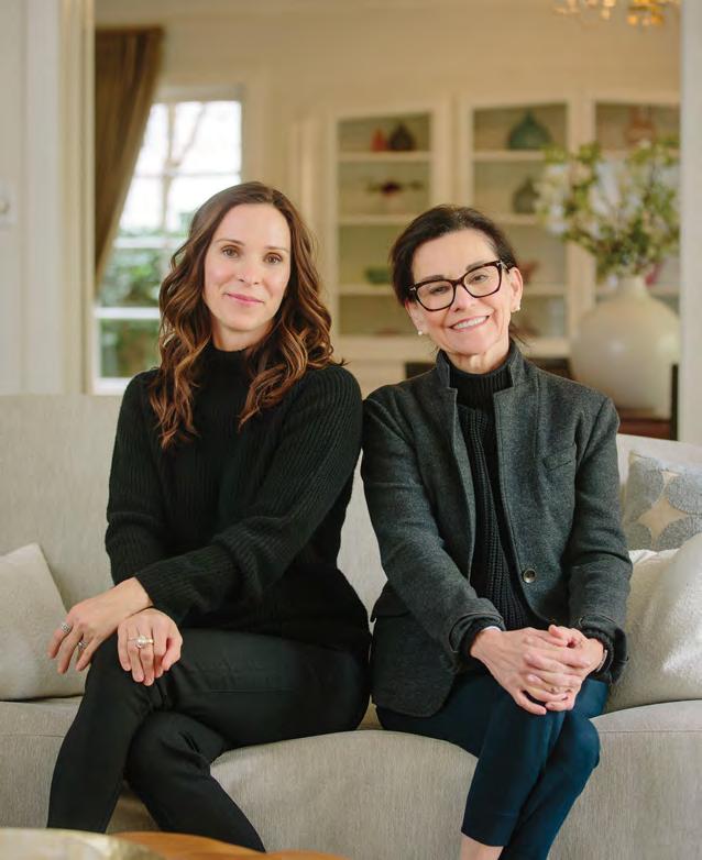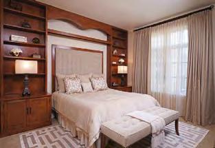 The dining room radiates elegance, adorned with two large nineteenth century family portraits, and a custom crystal chandelier designed by one of the homeowners. Beyond the dining room, the mahoganycountered butler’s pantry opens to a remodeled kitchen featuring Jerusalem Gold marble countertops. Suspended over the central island is the family’s antique birdcage refitted as a chandelier. The adjoining family room’s large bay window offers tranquil views of the rear garden’s boxwood parterres, echoing that of the front garden which was designed in 1997 by landscape designer Cynthia Varsi.