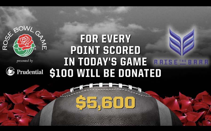The 2023 Rose Bowl Game held its second annual in-game donation campaign called “Points for Change,” which highlights organizations that create change throughout the Greater Los Angeles community. This year, $100 for every point scored in the Utah and Penn State game was donated to Raise the Barr.