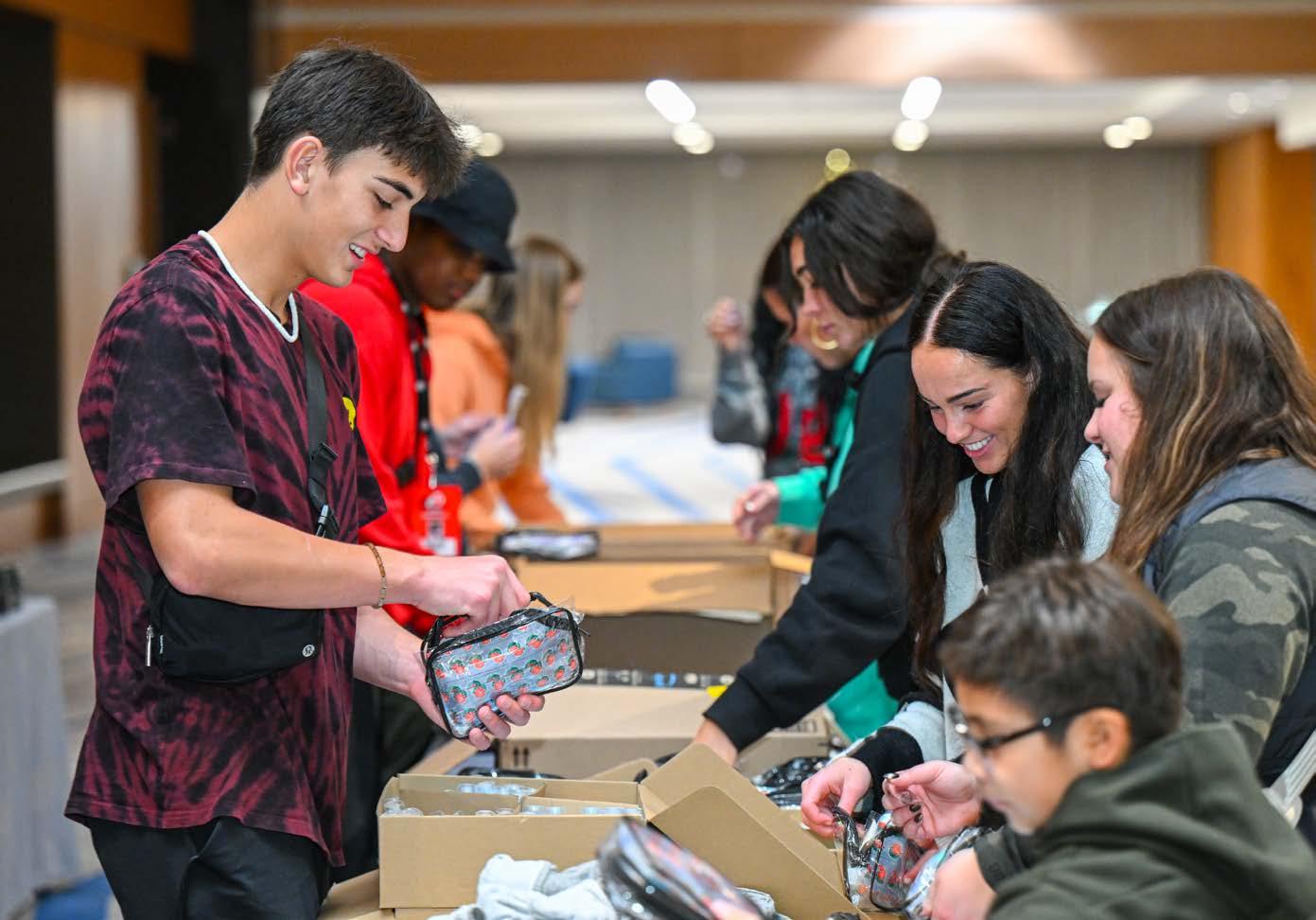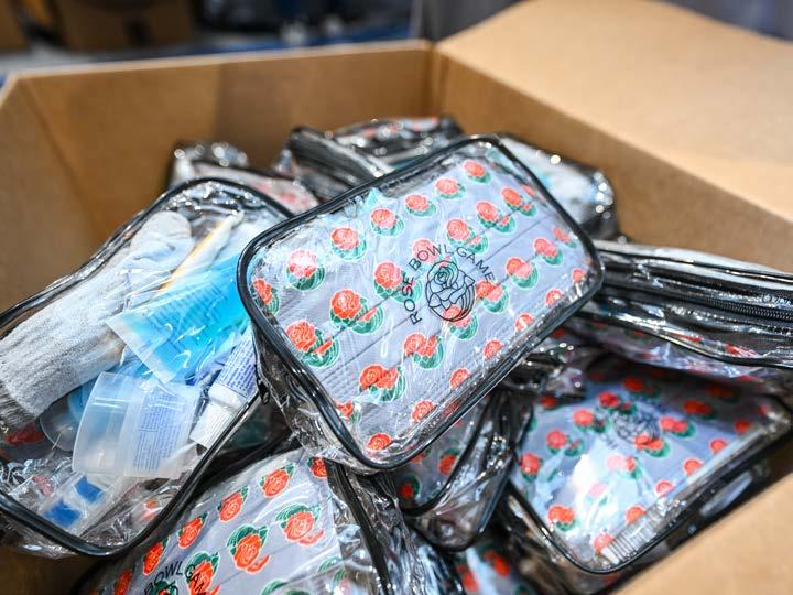 While in town for the 109th Rose Bowl Game, families from the University of Utah and Pennsylvania State University football teams came together to assemble hygiene kits for unhoused people in Los Angeles. Through a partnership with Walmart, 1,000 kits were assembled and included thermal blankets, toiletries, socks and masks for those in need. Following the game, the kits were delivered to the Midnight Mission in Los Angeles by the 2023 Royal Court.