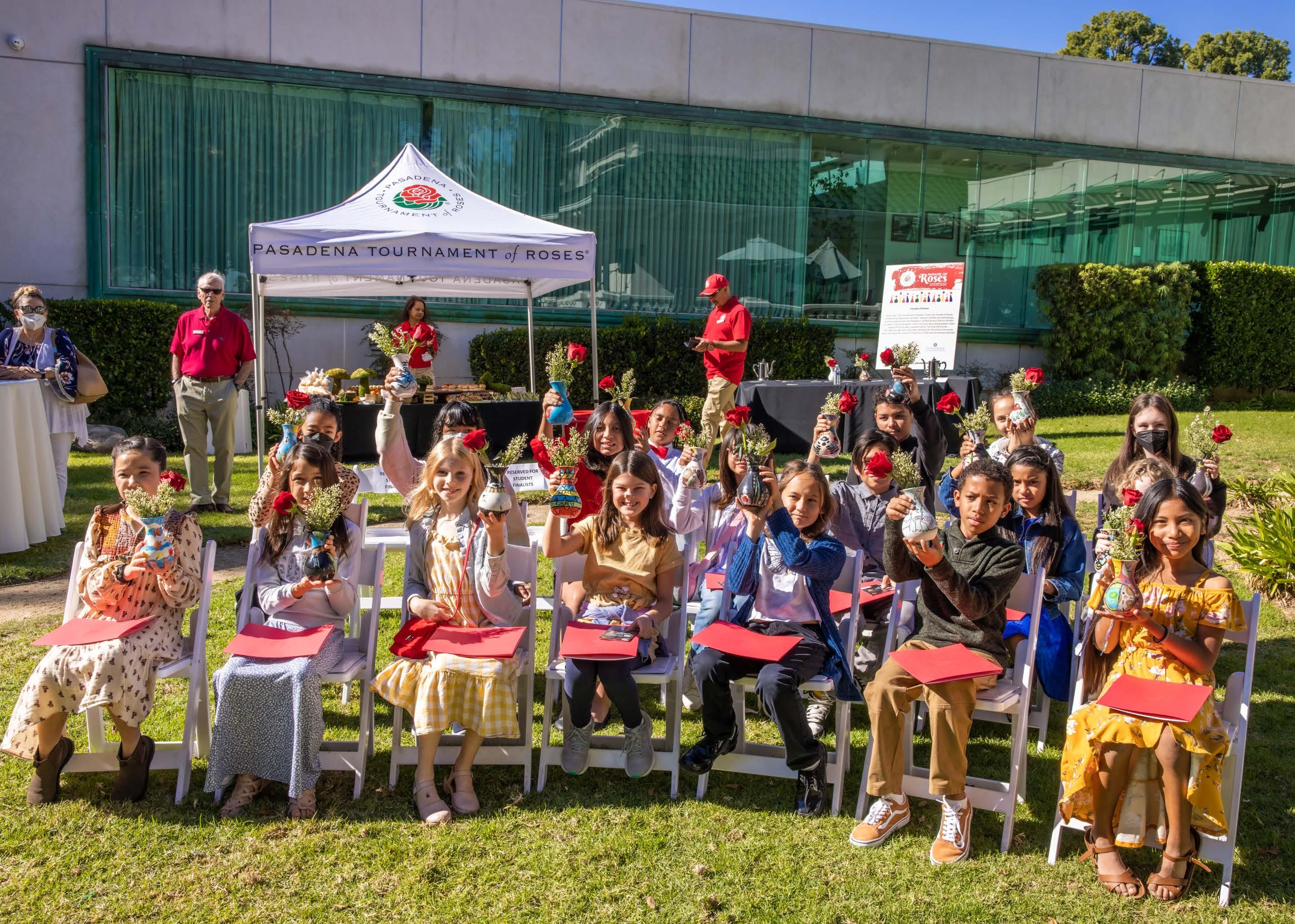 The Parade of Roses is an art competition presented by Southwest that was open to Pasadena Unified School District elementary and middle school students. The program provides an outlet for students to express their artistic talents, with the Rose Parade theme as inspiration. In 2022, 20 finalists from across the district were selected and invited to transfer their drawings to plaster vases using paint and other materials. A special reception was held in honor of the finalists to display their work in front of their families, peers, school district officials and the Royal Court. Awards were presented for first, second and third place in the elementary and middle school categories. Students designed images inspired by the 2023 Rose Parade theme, Turning the Corner.