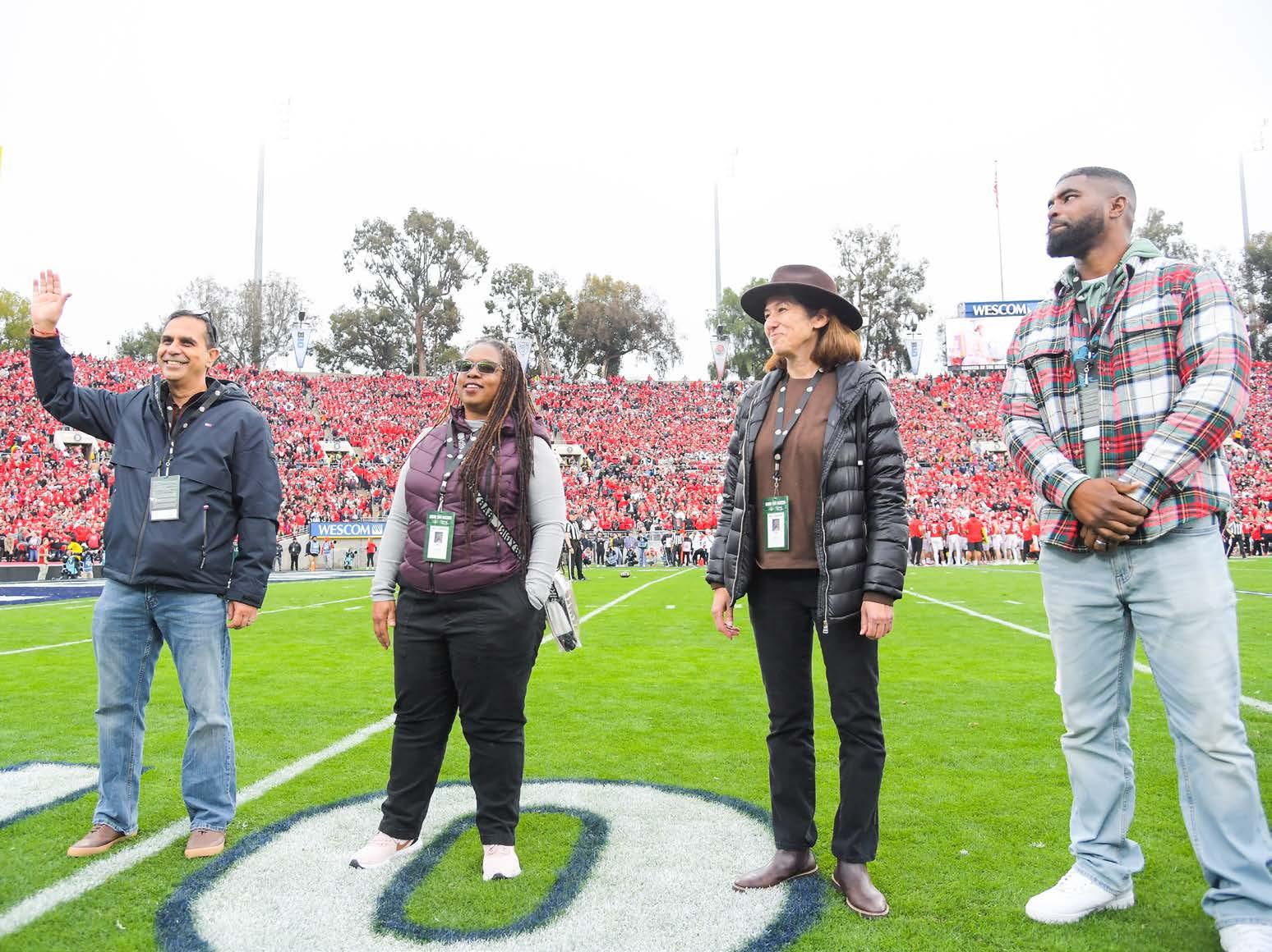 In partnership with Pasadena Unified School District (PUSD) and their PUSD Awards program, the district’s recipients for Teacher of the Year, Principal of the Year, and Hero of the Year were recognized on the field during the first quarter of the 2023 Rose Bowl Game. Lance Mitchell, Head Coach of the 2022 CIF Championship winning John Muir High School Football Team, was also honored for his achievements at his alma mater. Each honoree was provided four tickets to the VIP Tailgate and the 109th Rose Bowl Game.