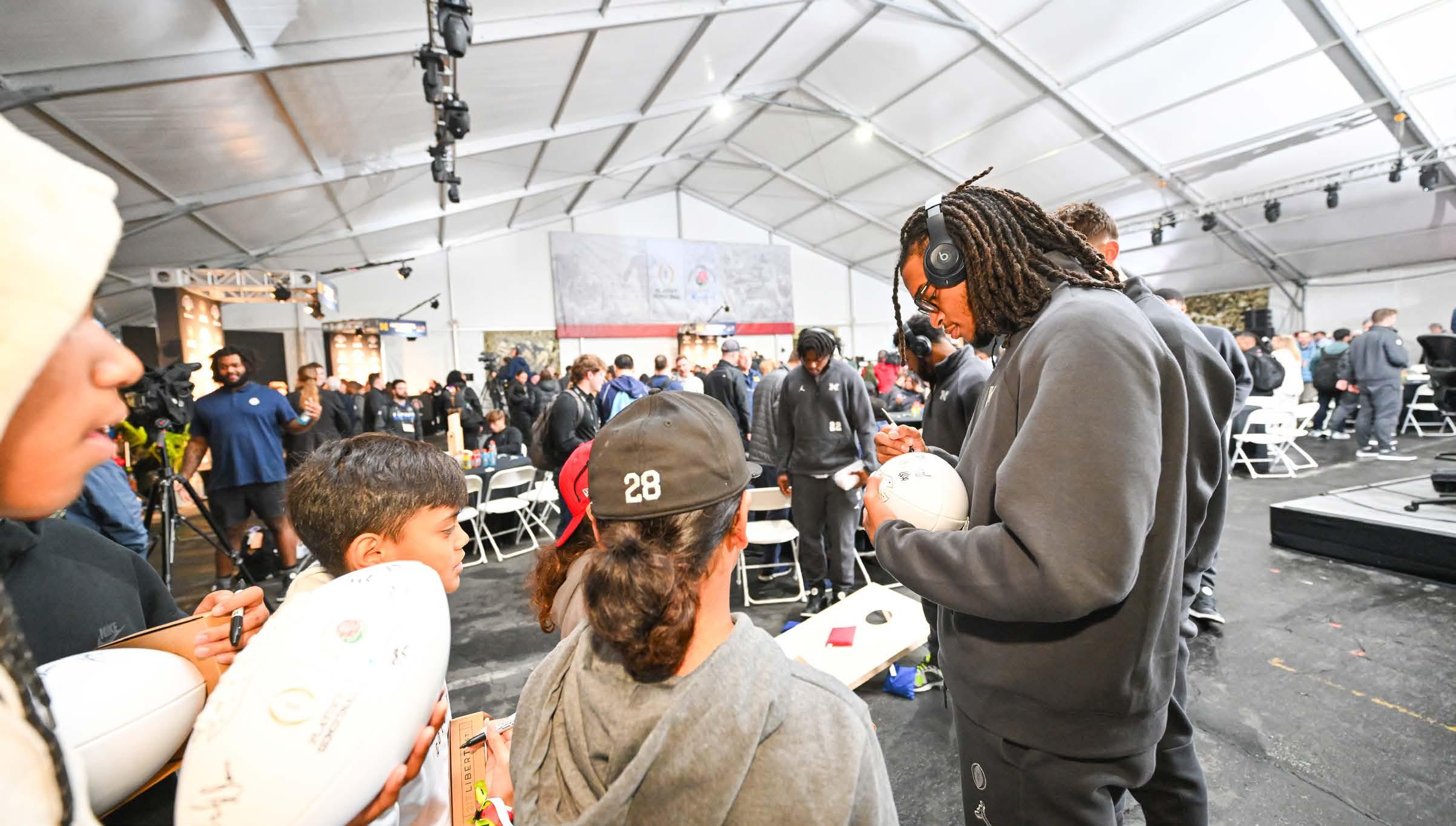 Teams from the Snoop Youth Football League were invited to attend the team media day at the CFP Semifinal at the Rose Bowl Game presented by Prudential. SYFL is a non-profit organization founded by rapper and entertainer Snoop Dogg, that provides inner city children with the opportunity to participate in youth football and cheerleading. The two 12U teams selected, the Reps and the SB 49ers, observed Michigan and Alabama’s media sessions, collected autographs and had a chance to interact with their favorite players. Following the event, both youth football teams were led on a private tour of the stadium and enjoyed lunch from In-N-Out Burger.