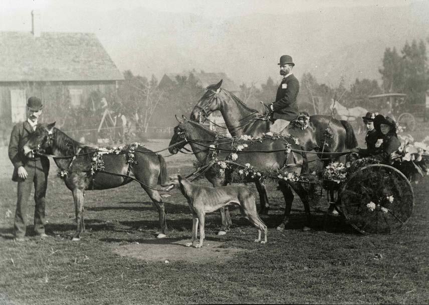In the winter of 1890, members of the Valley Hunt Club brainstormed ways to promote the Pasadena area. They created a festival that included games such as chariot races, jousting, foot races, polo and tug-ofwar under the warm California sun. The abundance of fresh flowers prompted the club to add another showcase for Pasadena’s charm: a parade to precede the competition, where entrants would decorate their carriages with hundreds of blooms.