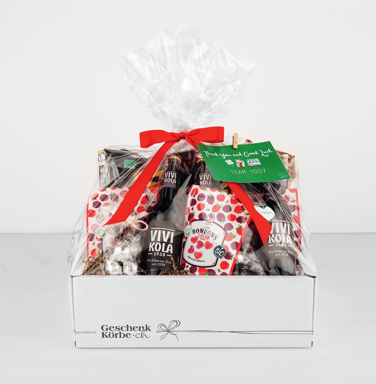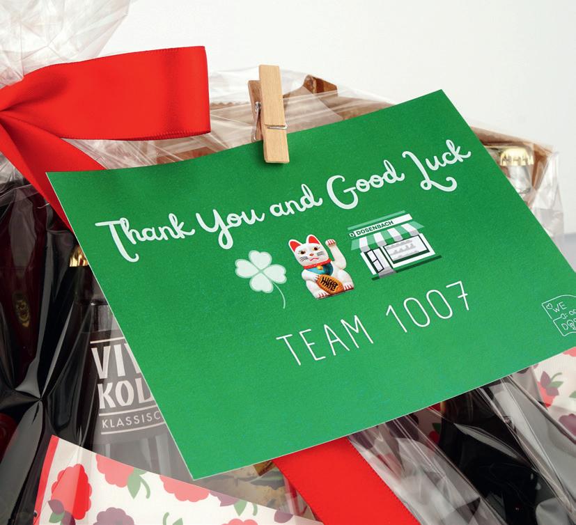 Für Dosenbach realisieren wir regelmässig individuell zusammengestellte Geschenkkörbe, die jeweils zur Eröffnung neuer Filialen überreicht werden. Jedes Präsent wird mit einer personalisierten Grusskarte und einem Sticker ergänzt, die von Dosenbach angeliefert werden. So entsteht ein wiederkehrendes Geschenk, das den Mitarbeitenden Wertschätzung vermittelt und gleichzeitig die Marke Dosenbach wirkungsvoll präsentiert.