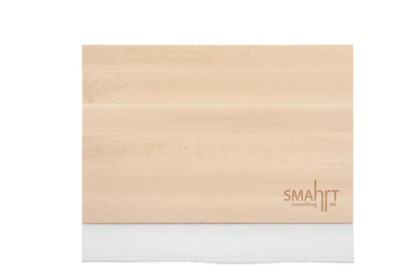 Für die Geburtstagsgeschenke der smahrt-Mitarbeitenden haben wir einen individuellen Geschenkkorb kreiert, gefüllt mit ausgewählten Spezialitäten. Das Herzstück bildet ein hochwertiges Holzschneidebrett mit Lasergravur des Firmenlogos, kombiniert mit einem Panoramaknife – beides langlebige Begleiter im Alltag. Ergänzt wird das Präsent durch eine persönliche Grusskarte mit Gutschein. Der Versand erfolgt pünktlich zum jeweiligen Geburtstag.