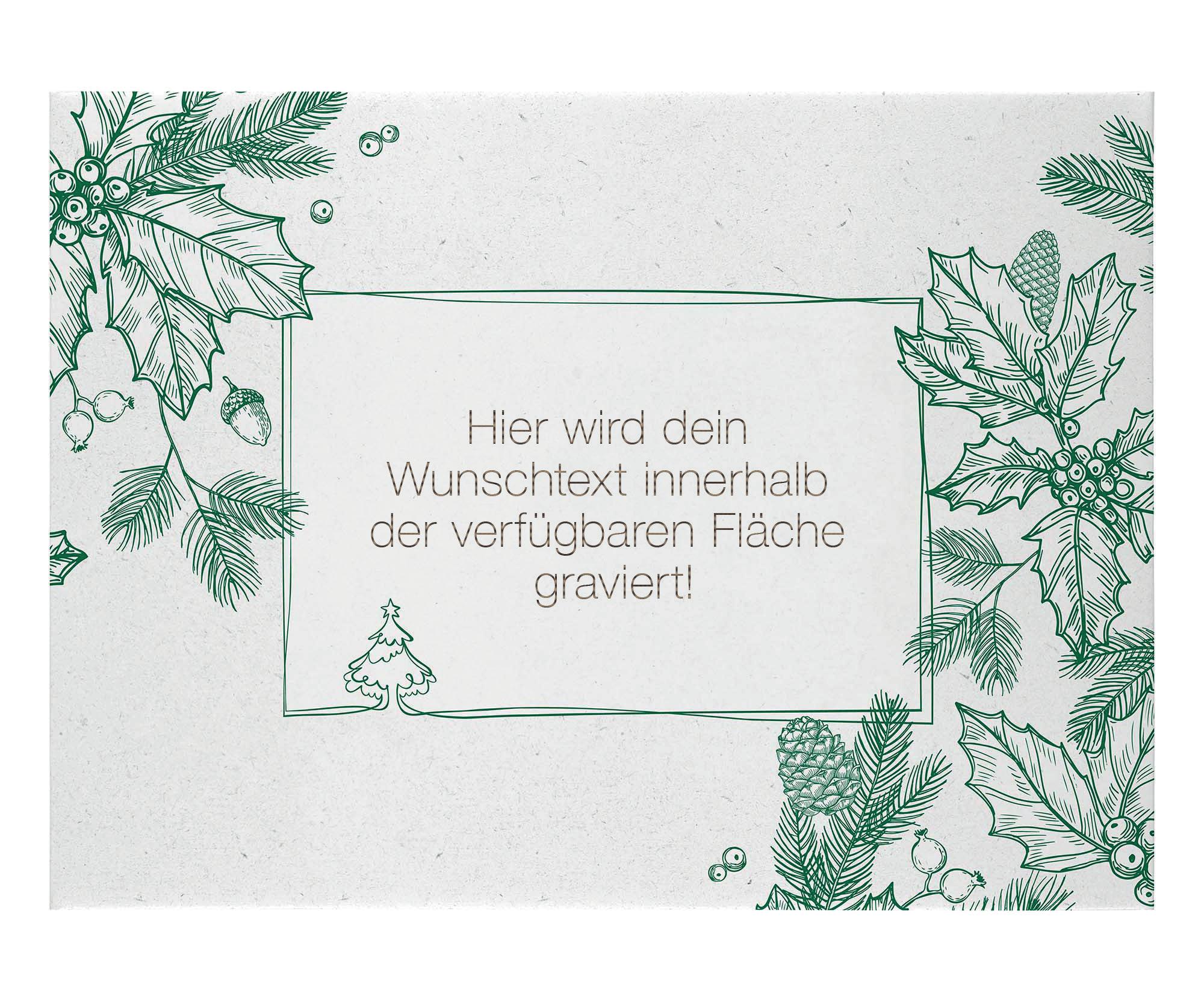 Dein Wunschtext darf die maximale Anzahl an 75 Zeichen nicht überschreiten. Bei Bedarf kannst du über die Checkbox ein Gut zum Druck bei uns anfordern, dann senden wir dir anschliessend ein PDF zur Ansicht.