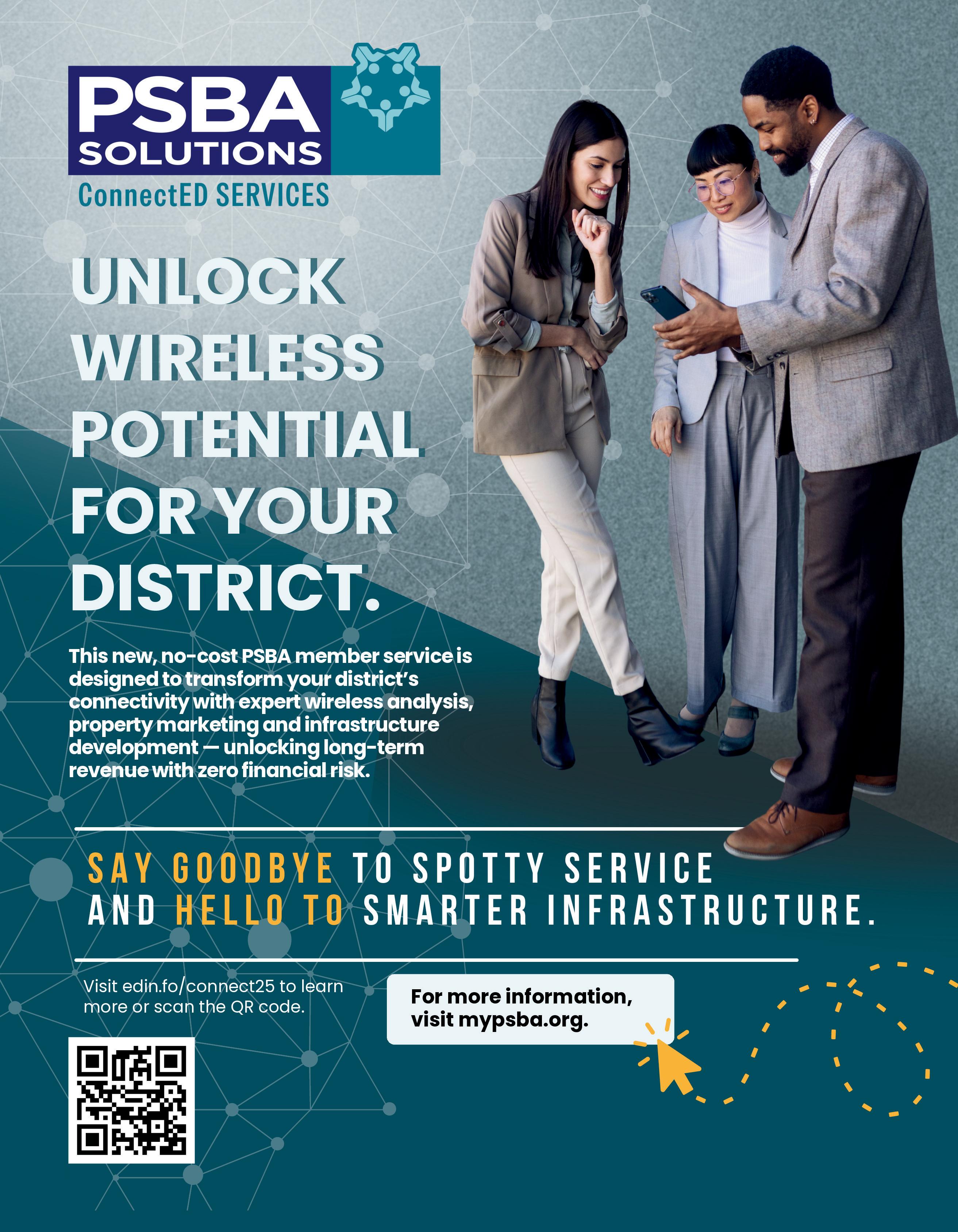 POLICY: The granting of PSBA Partners and the acceptance of advertising in this publication do not necessarily constitute an endorsement by the Pennsylvania School Boards Association for products and services offered by the advertisers. Official positions and services endorsed by PSBA will be clearly stated and noted in this publication. Opinions by authors do not necessarily reflect positions of PSBA. © 2025 Pennsylvania School Boards Association.