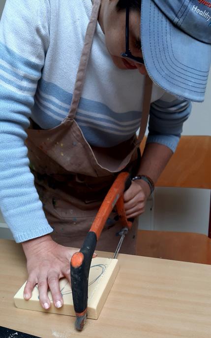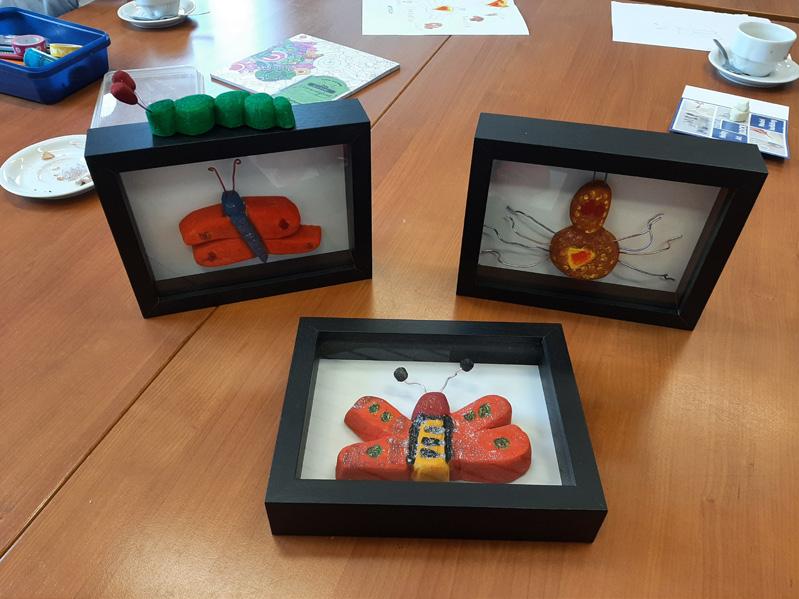 De vorming Kriebelige dieren ging van start. Hier zie je alvast wat foto’s van de locaties Tienen en Peer. We werkten met sculpture block, dat is een soort schuim om in te beeldhouwen. Eerst zaagden we de blok op maat. Dan tekenden we er een kriebelbeestje op. Bijtelen, vijlen, schuren, ... ons diertje kreeg vorm. Namiddag verfden we het en deden er glitters op. Zo was het klaar voor in het kader. Knap werk allemaal!