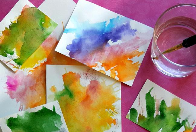 • Eerst maken we een mooie achtergrond met zachte kleuren.