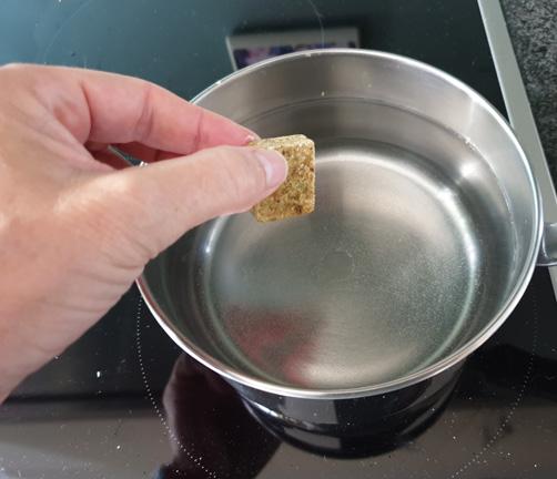 Breng 1 liter water aan de kook in de andere kookpot. Los het bouillonblokje op.