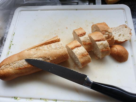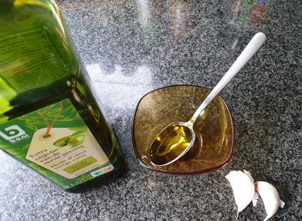 Pers de knoflook in een kommetje. Meng deze met de olijfolie.
