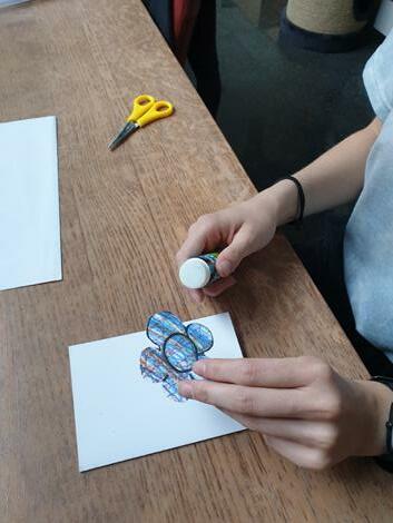 Wil je een stukje van je tekening bewaren? Teken dan een figuur over je kribbels. Dat kan een bloem, een hartje, ... zijn. Knip deze figuur uit. Kleef ze op een stevig papier of kaartje.