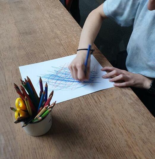 • Teken zonder na te denken. Volg je gevoel en teken kriskras lijnen op je blad.