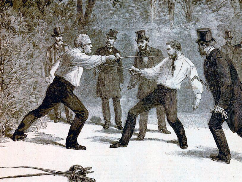 Les parlements sont parfois le théâtre d’attaques verbales, voire physiques. Ce n’est pas le cas en Suisse. Dans notre pays, le respect mutuel et la volonté de trouver un compromis sont maîtres. Mais il n’en a pas toujours été ainsi. En automne 1848, lors de la toute première session du Conseil national, une violente dispute a éclaté entre le tessinois Giacomo Luvini et le zurichois Rudolf Benz. Les choses n’en sont pas restées là: le 29 novembre, les deux belligérants ont croisé le fer sur le terrain d’exercice de la caserne de la cavalerie.