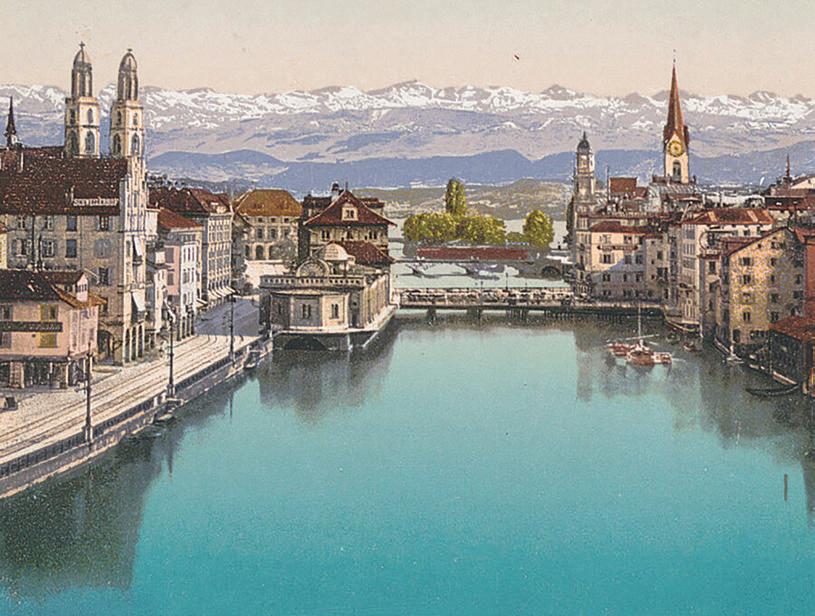 La bibliothèque centrale de Zurich possède l’une des plus grandes collections de photochromes de la Belle Époque du monde. La photographie à la base des photochromes n’était pas en couleur mais en noir et blanc. Les couleurs utilisées étaient le fruit de l’imagination des imprimeurs, et il arrivait qu’ils commettent des erreurs de coloration. De nombreux clichés étaient également retouchés: par exemple, des personnes étaient ajoutées a posteriori ou des bâtiments étaient déplacés afin d’obtenir un meilleur effet.