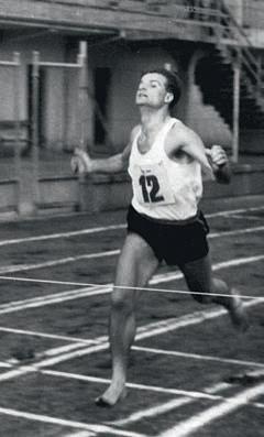 Franz liefert den Beweis: Auch ohne Turnschuhe kann man an einem Wettkampf teilnehmen! Meraner Hochschulwochen, 1.500-m-Lauf; Mitte der 60er-Jahre