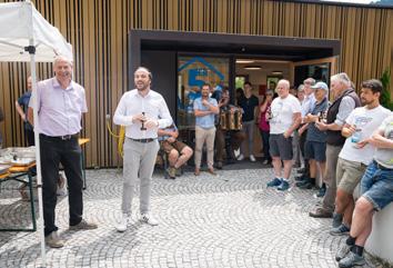 Persönliche Gespräche und gemeinsames Singen Nach den kurzen Reden stießen alle gemeinsam an und genossen die frisch gegrillten Spezialitäten. Die Volksmusik des Duos „Hou“ animierte alle zum Mitsingen. Landesrat Achammer nutzte die Zeit für persönliche Gespräche mit den Mooser Bürgerinnen und Bürgern. Gothard Gufler und Konrad Pamer führten Achammer anschließend durch das Haus und informierten ihn über den Bauprozess und die Nutzung des Gebäudes.
