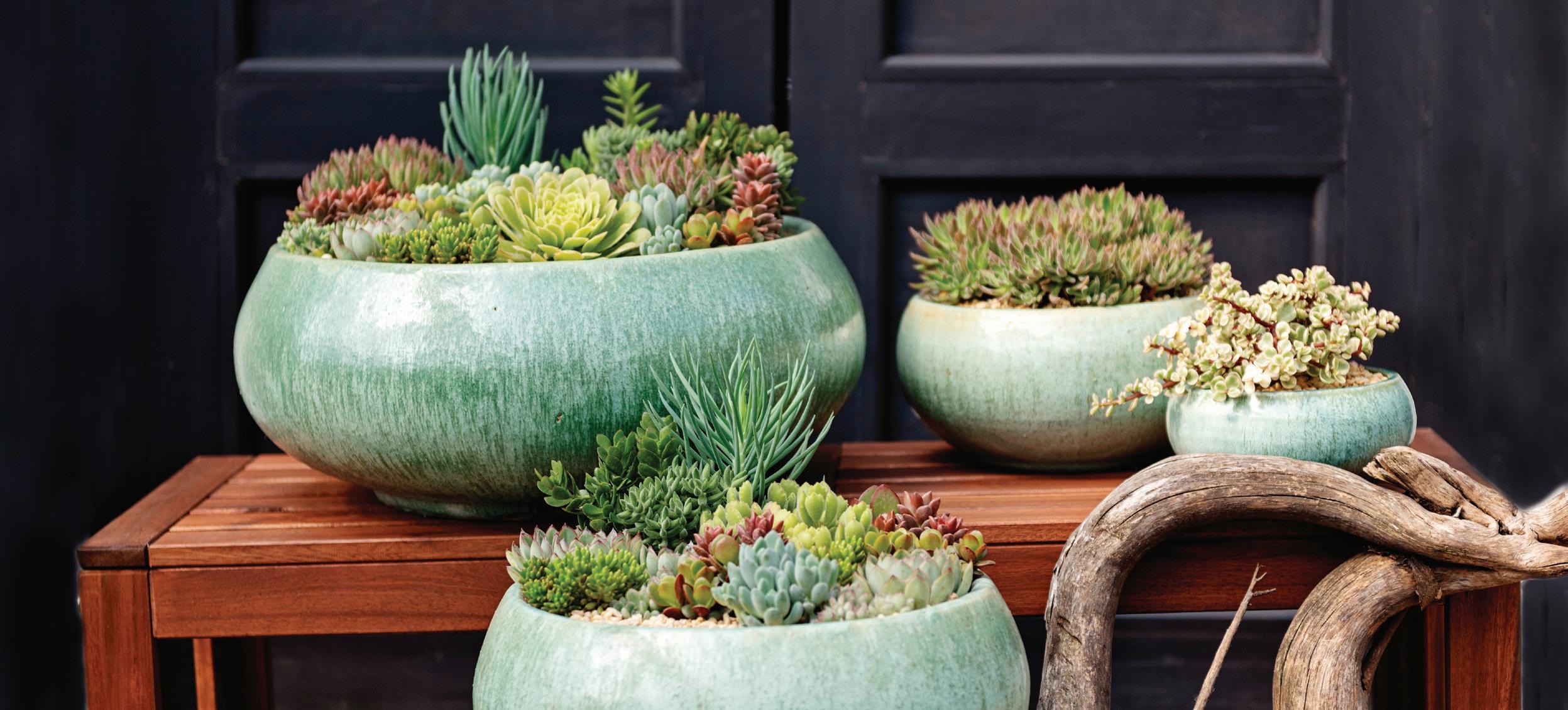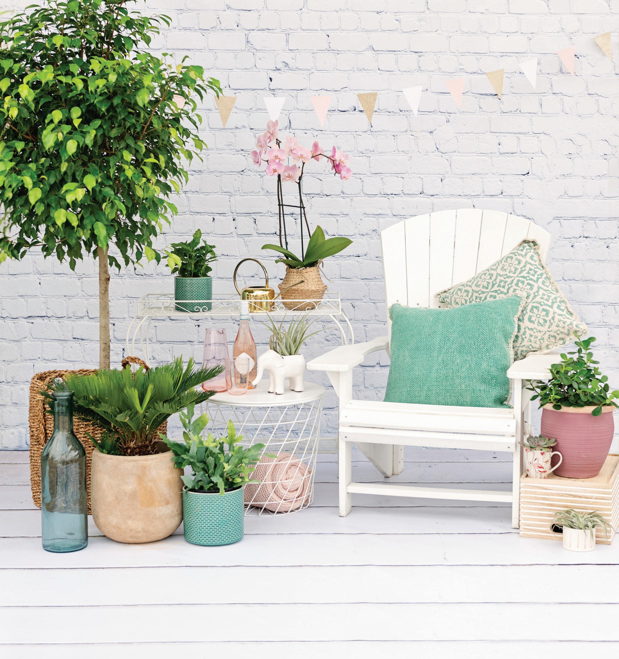 Kalanchoé à fleurs en thyrse Plante àmonnaie chinoise Oreille d’éléphantPensez à regrouper vos petits contenants plutôt qu’à les disperser. De plus, un mélange de différentes textures de pots et de feuillages ajoute une touche plus tendance à votre décor.