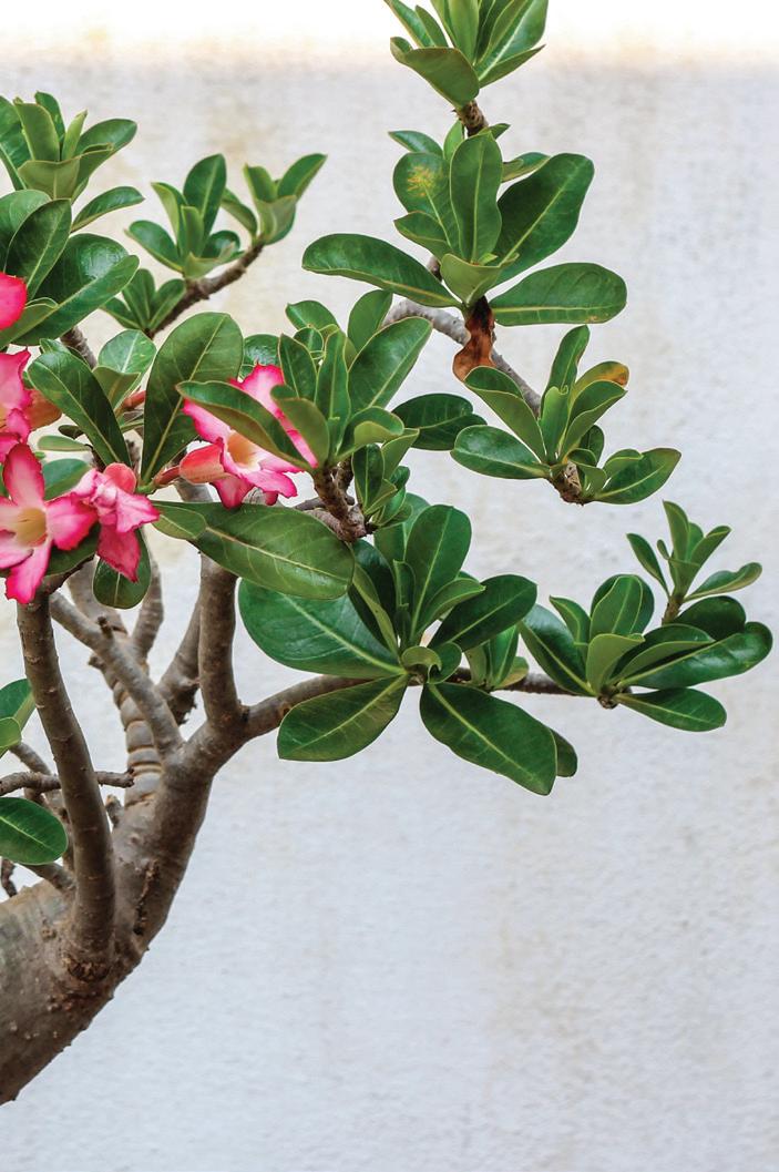 La rose du désert, ou baobab chacal, possède une tige très enflée. Cette plante à fleurs colorées peut vivre jusqu’à 600 ans !