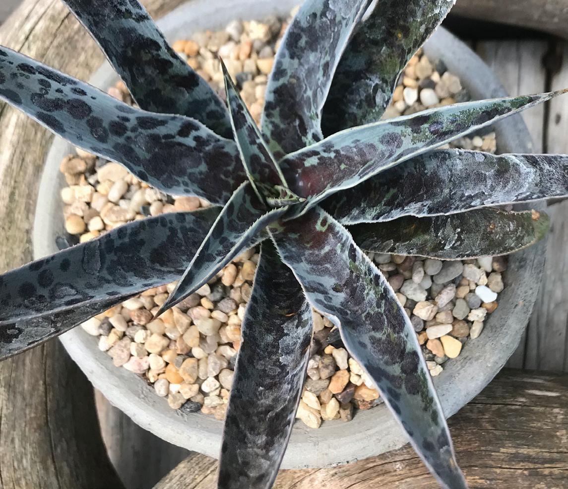 Feuilles frisées bleues à contours roses. Une succulente très décorative.