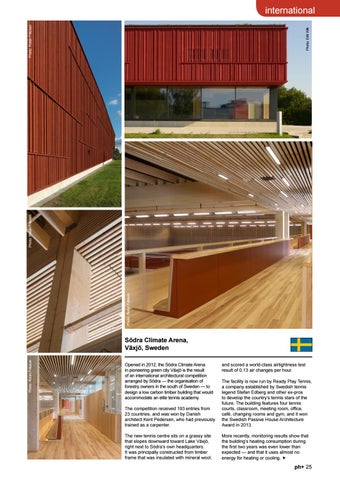 Södra Climate Arena, Växjö, Sweden Opened in 2012, the Södra Climate Arena in pioneering green city Växjö is the result of an international architectural competition arranged by Södra — the organisation of forestry owners in the south of Sweden — to design a low carbon timber building that would accommodate an elite tennis academy.
