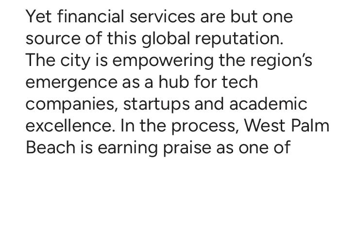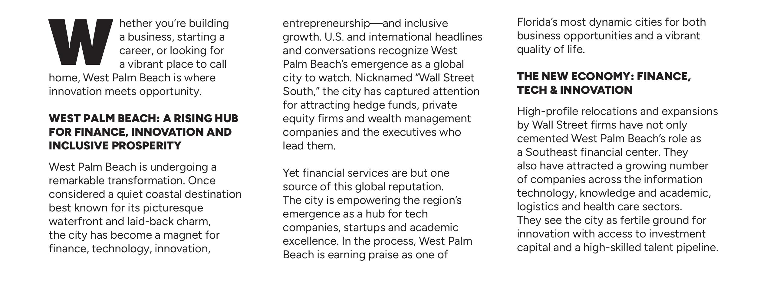 THE IDEA BEHIND “WALL STREET SOUTH” began as a way to describe the migration of service firms to the Palm Beaches. Today, it’s a globally known brand that exemplifies a movement of growth and sophistication across all sectors including fi aviation, aerospace, life science, healthcare—and now, industries of the future like quantum computing .