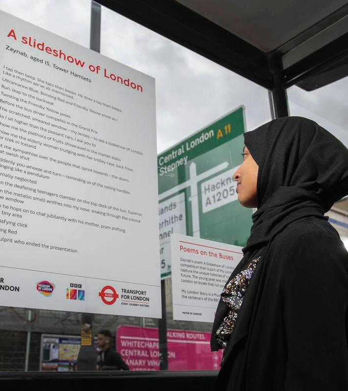 Judges have selected 15-year old Zaynab from Tower Hamlets for her poem, A Slideshow of London. It will now be displayed at London bus stops to celebrate National Poetry Day.