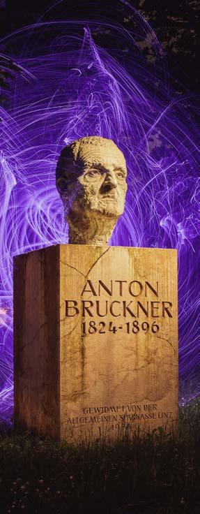 chester Linz live erleben, sondern im audiovisuellen Deep Space 8K im Ars Electronica Center die Musik mitgestalten. Im Stift St. Florian geht es um Bruckners Visionen, in der Ausstellung It’s me, Toni um seine Identität und im Klangwald um die komplette Entschleunigung.
