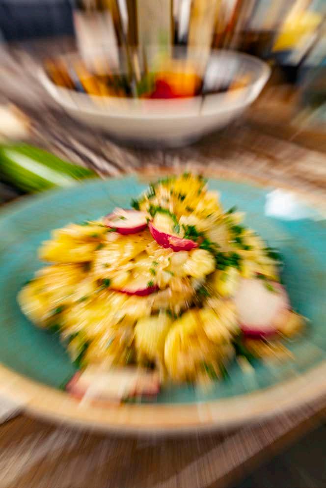Ombralonga bedeutet übersetzt „langer Schatten“. Das trifft es ziemlich genau: Die letzten Jahre seit dem Abgang des legendären Wirts Biagio Facin Ende 2018 waren problematisch, die letzten Pächter haben nie so richtig die Verbindung zu dieser einzigartigen Location gefunden; deshalb stand das Ombralonga zuletzt einige Zeit leer. Ende Mai 2024 übernahmen nun zwei VollblutGastronomen die Geschicke des Lokals: Claudia und Enrico Bomba, die wir schon aus dem L’Angolino in Hartkirchen kennen, wo sie zuletzt acht Jahre erfolgreich tätig waren. Enrico ist auf Fisch & Meeresfrüchte spezialisiert – seine Frau Claudia kümmert sich um die Pizza, die es im Ombralonga übrigens zuvor noch nie gegeben hat. Der Anfang ist vielversprechend, Claudia ist eine gute, eloquente Gastgeberin, das Essen schmeckt, das Konzept passt. Alles ist angerichtet – wir bleiben ganz nah dran.