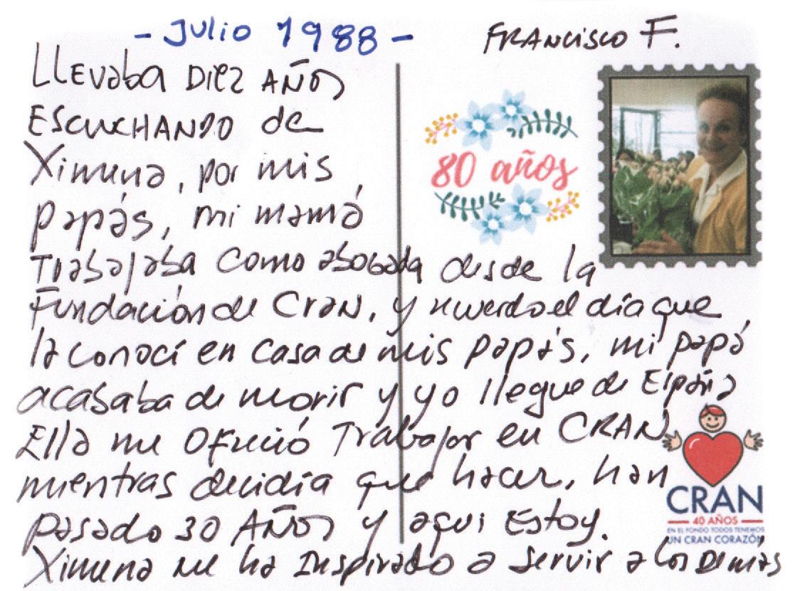 Es un privilegio enorme, porque lo que ella ha construido durante 40 años aquí en CRAN es una gran familia, con todas ustedes, personas que de una u otra manera han estado presentes y con las personas que están hoy, que tienen ese compromiso, que trabajamos de manera entusiasta por hacer posible que los niños tengan la oportunidad de crecer en una familia amorosa y cuidadora.