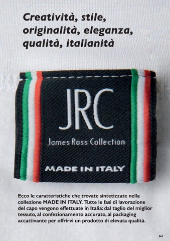 Ecco le caratteristiche che trovate sintetizzate nella collezione MADE IN ITALY. Tutte le fasi di lavorazione del capo vengono effettuate in Italia: dal taglio del miglior tessuto, al confezionamento accurato, al packaging accattivante per offrirvi un prodotto di elevata qualità. 341 MADE IN ITALY.indd 1