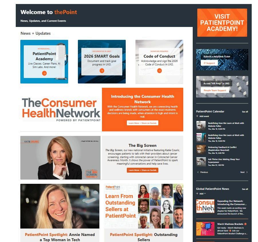 All browsers will begin to default to PatientPoint intranet HOME page. This important update will help consolidate information about our business, our go to market momentum, and news and updates for all teammates.