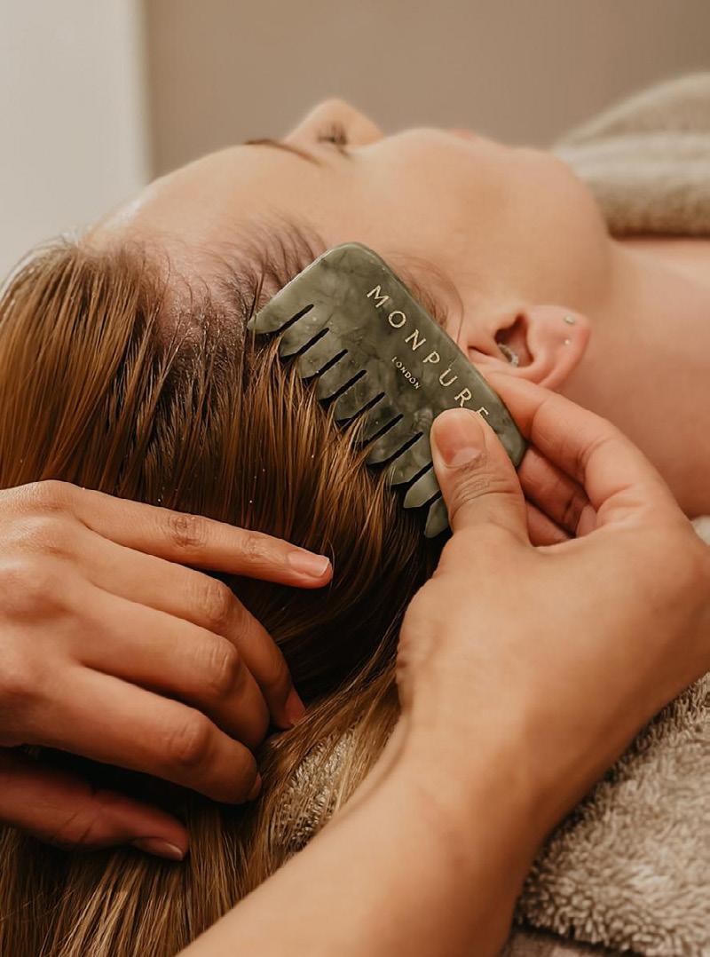Rejuvenate with a 45-minute nutrient-rich head massage using smooth jade stones. This treatment stimulates the scalp, eases muscle tension, and promotes the emergence of stronger, healthier hair.