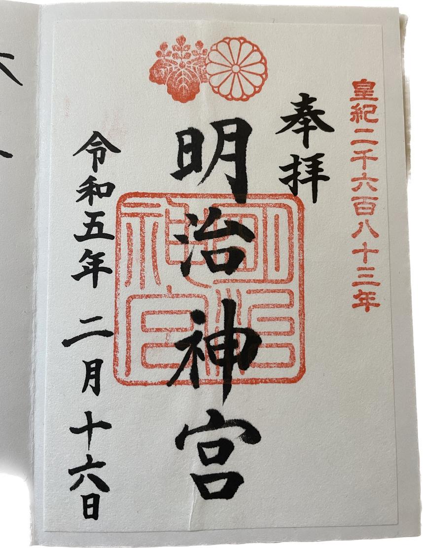 Shibuyan pohjoispuolella Huomaa pyöreä keisariperheen krysanteemisymboli leimassa keskellä ylhäällä Vain harvoilla pyhäköillä on oikeus kantaa tätä symbolia Läheisyys keisariperheeseen näkyy myös nimessä, jingu-pyhäköillä on läheinen suhde keisariperheeseen. Pyhäkön