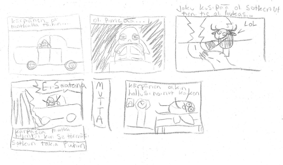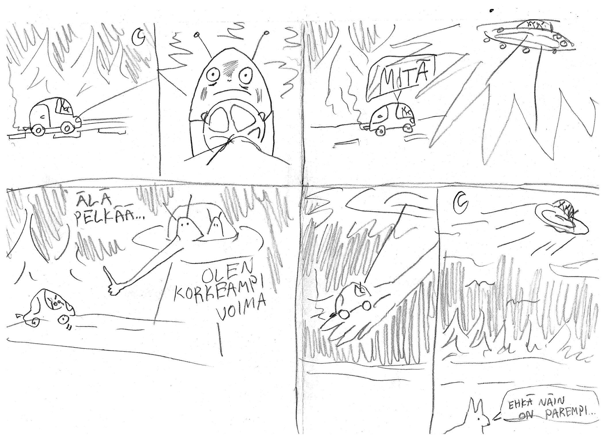Mauno juoksi Hän juoksi takaisin kohti rintamamiestaloaan Unohtaneena nälän ja kaikki fyysiset tuntemuksensa Mayhemin demoni lepatti tuulessa Maunon rintaa vasten Rintaa, jossa syke oli saavuttanut lakipisteensä Paniikissa on kyse kognitiivisfysiologisesta ketjureaktiosta, jossa mieli reagoi koko ihmisen keskushermoston kanssa. Kun korttitalosta poistetaan alarivistä yksikin kortti, koko rakennelmalla on taipumus sortua Jos juustot olivat merkityksetön asia maailmankaikkeudessa, kuka sitten takaa, että rintamamiestaloilla, bändipaidoilla, hammasharjoilla tai edes Kinder-yllätyksillä on mitään merkitystä? Ajatus oli liian tuskallista käsittää Mauno itki