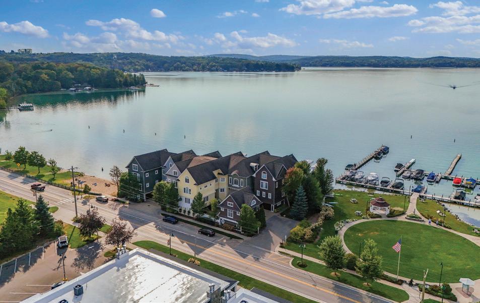 This beautiful residence in The Renwick is located at the heart of the Village of Walloon Lake. Renowned for its small-town charm, Walloon Lake offers the perfect escape from your fast-paced everyday life. Wake up to expansive views of Walloon Lake’s Caribbean-blue waters from this 2-bedroom, 2-bath luxury condominium. This is a rare opportunity to own a highly sought-after Renwick corner condo. The open-concept living space is bathed in natural light, featuring a stunning marble-surround gas fireplace. The living room showcases breathtaking lake views, while a spacious deck over looking the lake, complete with retractable screens, allows for seamless indooroutdoor living. The kitchen is outfitted with top-tier GE Monogram appliances and modern cabinetry. Additional enhancements include built-ins in the guest bedroom/ office, a glass shower door in the guest bath, and a whole-house water filtration system. The primary bedroom offers stunning views of Walloon Lake and a deluxe bath with a large walk-in shower and two-sink vanity. The second bedroom and bath offer ample accommodations. A full-size washer and dryer, and secure elevator access ensures effortless living. The one-and-a-half-car oversized garage, with a freshly epoxied floor, offers a touch of convenience and storage. In addition, the owner of this residence has the ability to rent a dockslip, available exclusively to lakeview owners. You’ll be moments from the Walloon General Store, fine dining at Walloon Lake Inn, casual fare at Barrel Back Restaurant, local favorites like Walloon Watershed wine bar, Iron Goat Coffee, Sweetwater Floral, Vintage Mercantile antiques and handbags at Vilah Bloom. Imagine living the Walloon lifestyle without the hassle of scheduling your dock every spring/fall, no yard to rake and mow, no more painting the house, or shoveling snow! Live the carefree life you’ve been dreaming of.