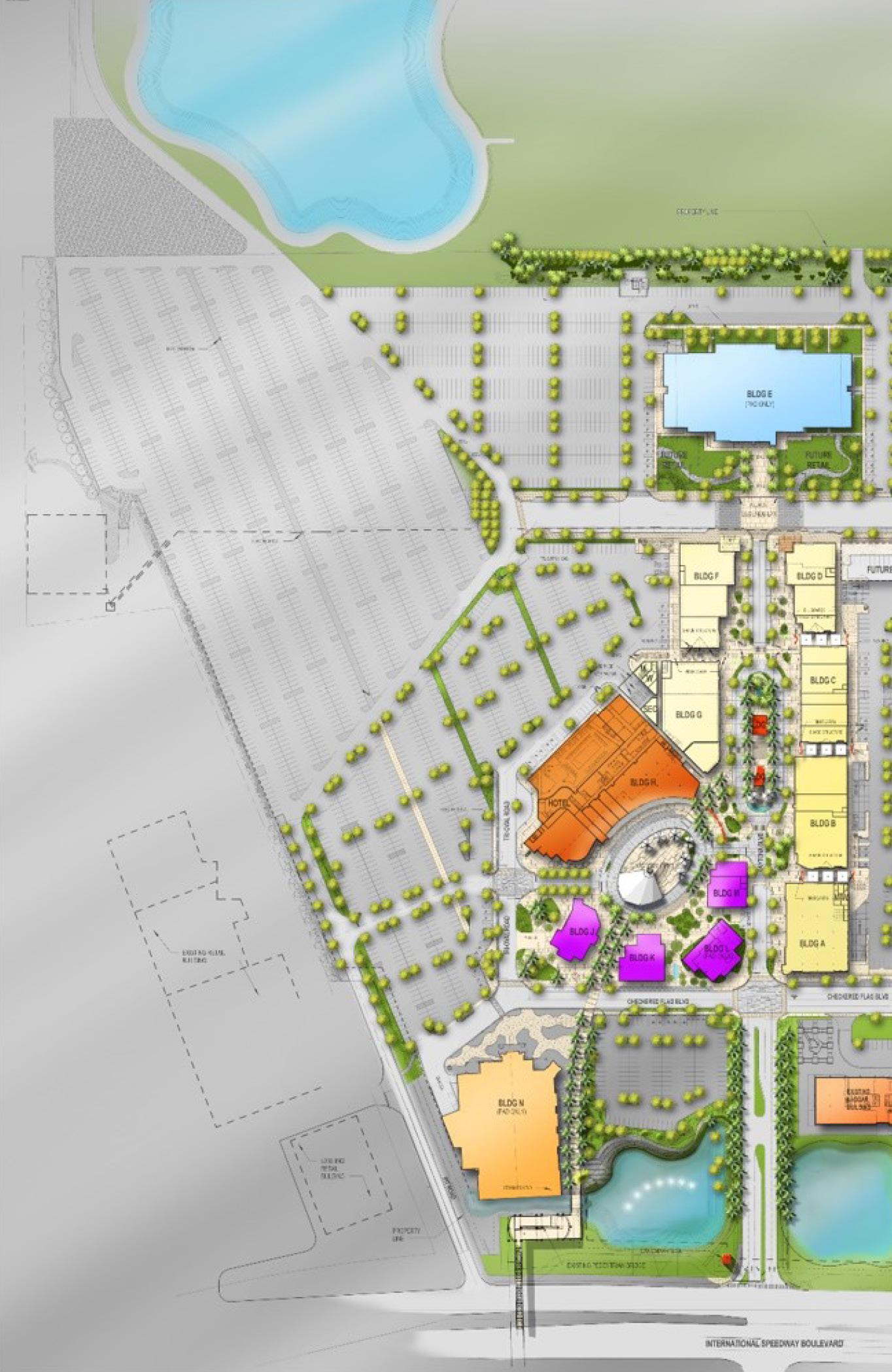 ONE Daytona is a Mixed-Use project developed by International Speedway Corporation on approximately 70 acres on International Speedway Boulevard, directly across from the Daytona International Speedway. The Phase 1 master plan includes street-level retail and restaurants, 3 levels of office space above street retail west of Daytona Boulevard, 300 forrent residential units above the street-level retail and a 550 space parking deck, by others. General master planning but includes architectural design for the approximately 176,214 sf of street-level retail and built to a “cold dark shell”.