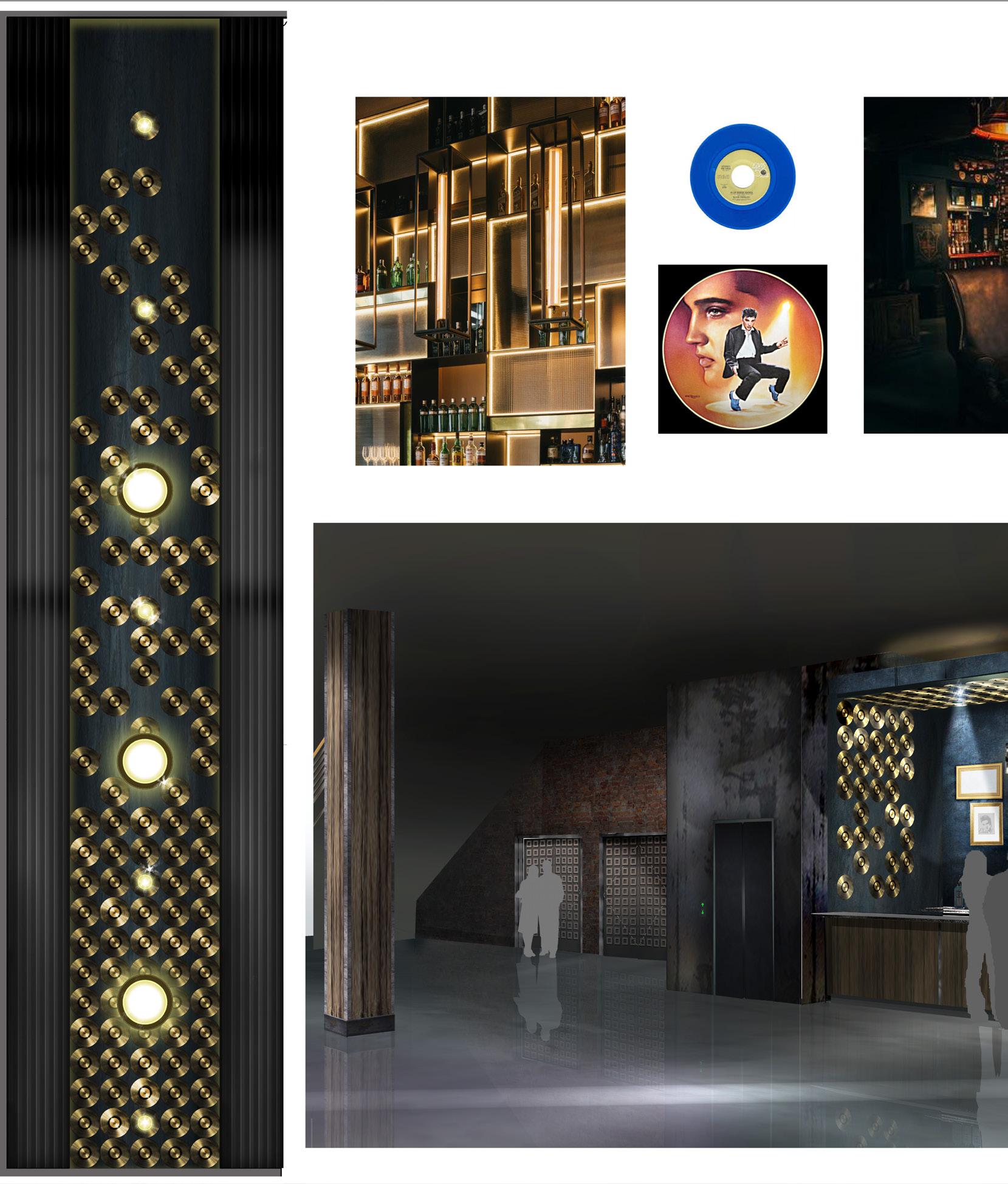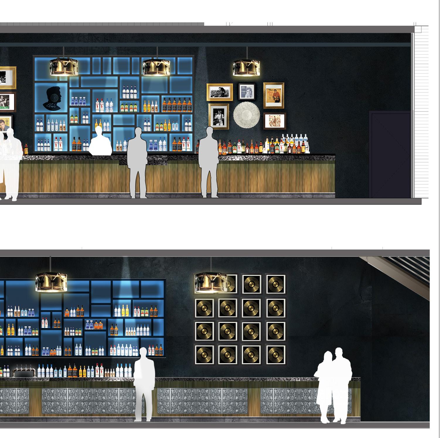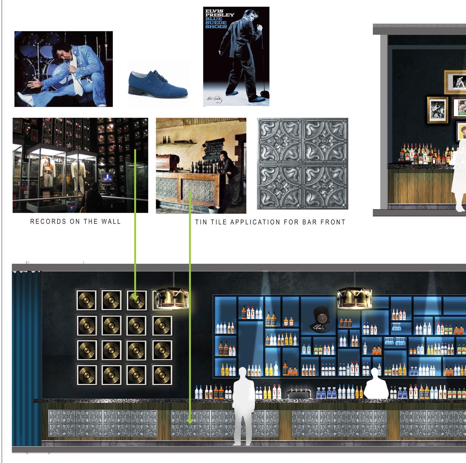 The idea behind the Elvis bar was to emphasize the signer Elvis Presley So I designed this bar around the song “Blue Suede shoes” as an inspiration.