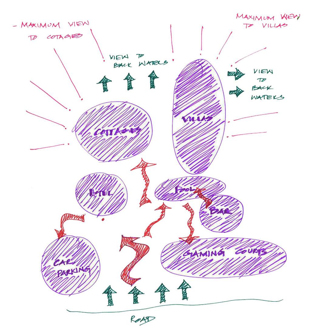 This design was part of my third year undergrad studio. The site is located in Kerala, a state located on the Malabar coast of South West India. The concept was based on the climatic conditions of the place. Kerala has a wet and maritime tropical climate influenced by the seasonal heavy rains of the southwest summer monsoon and north east winter monsoon, so the whole design is based on sloped roofs and locally available materials