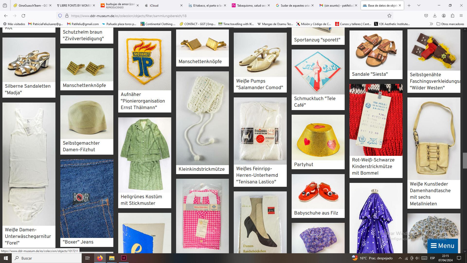 trabajo: selección de la ropa del diseño a partir del archivo del Museo de la República Democrática de Alemania.