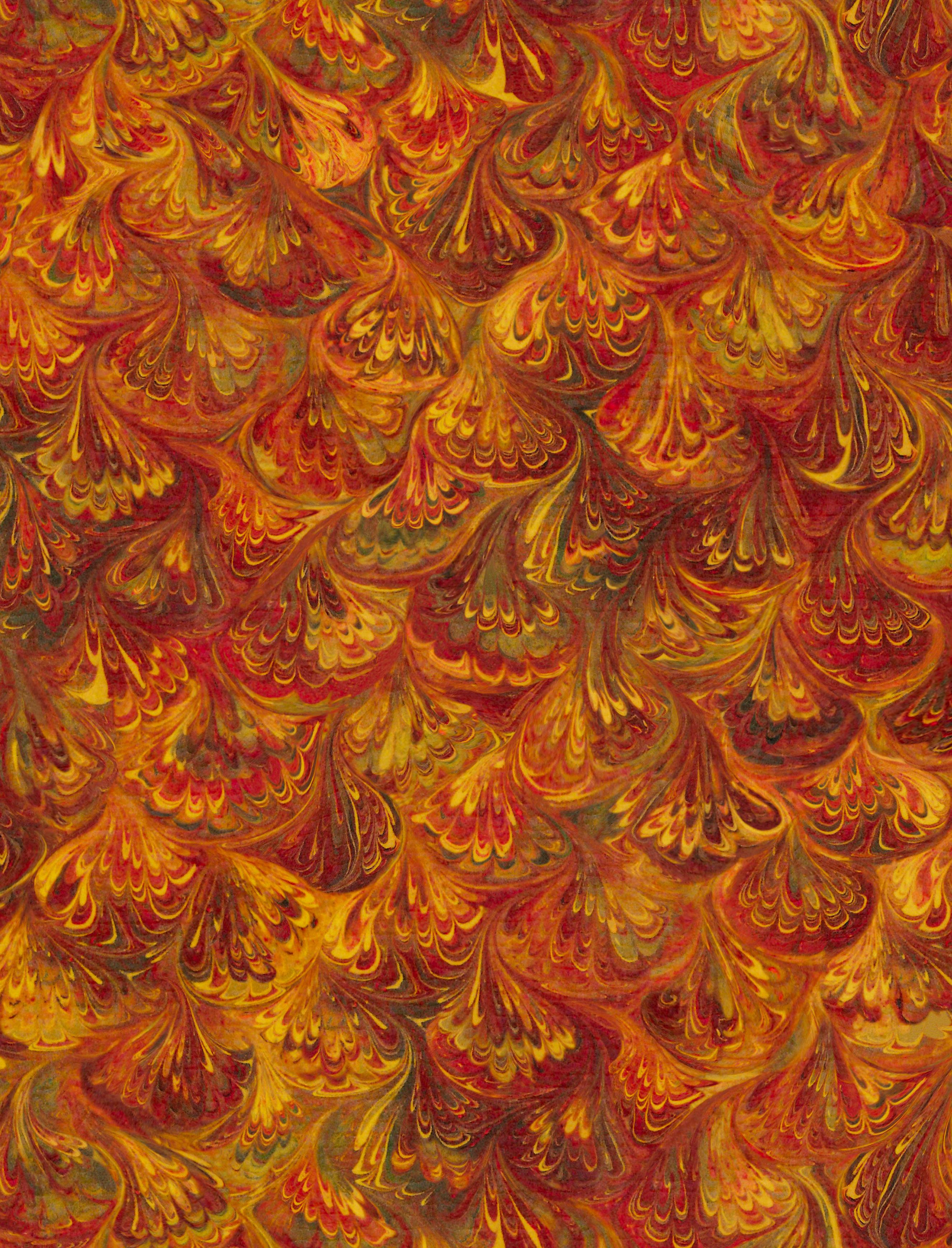 Patricia developed her own marbling print using the famous technique called Florentine Marbling.